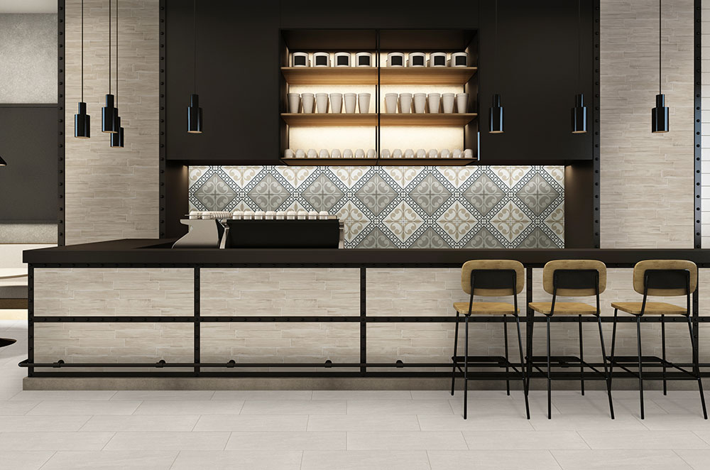 • Tile offers ease of maintenance with simple, water-based cleaning materials.